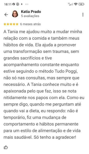 Cada um que chega na minha consulta e me conta sua história alimentar, suas preferências e me dá a oportunidade de entrar na rotina de suas vidas e transforma-las, é uma sensação de gratidão e responsabilidade, que tento retribuir a cada encontro com propostas que são discutidas com muito afeto e cuidado.